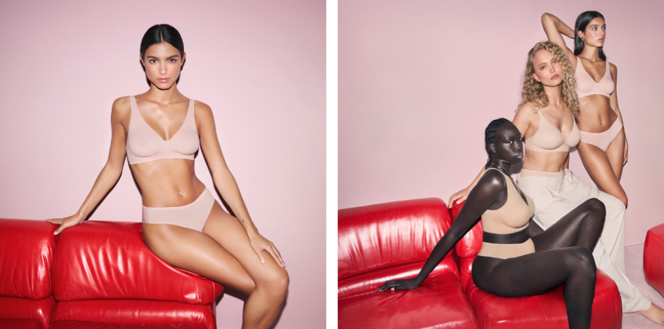 Grazie al suo tessuto super elastico, questa nuova gamma si adatta facilmente a tutte le morfologie, senza creare pieghe e garantendo un'invisibilità totale sotto gli abiti. Disponibile in nero e nude, la linea comprende diversi modelli: reggiseno a triangolo con morbide spalline regolabili e imbottiture amovibili, reggiseno bustier, top, slip coprente, brasiliana e string a vita alta.