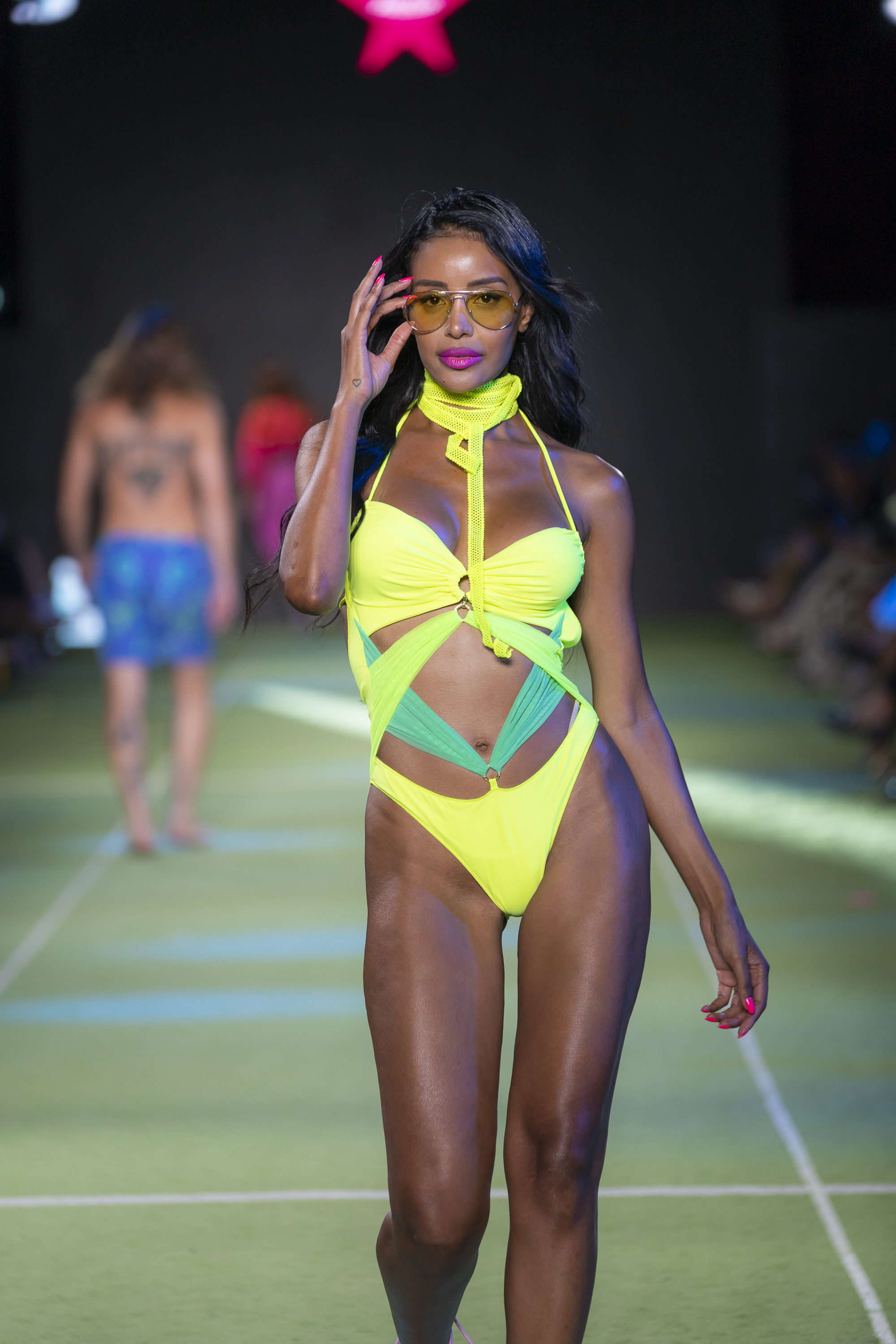On stage, inoltre, fantasie dal sapore esotico, come orchidee, hibiscus e fiori variopinti effetto 3D che evocano paesi tropicali, righe multicolor e cieli stellati.