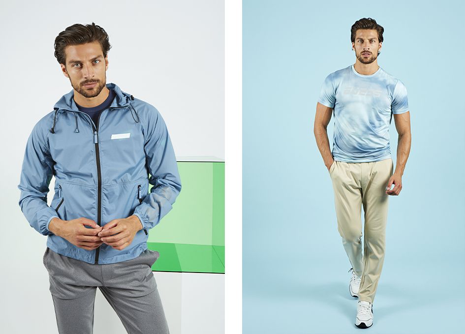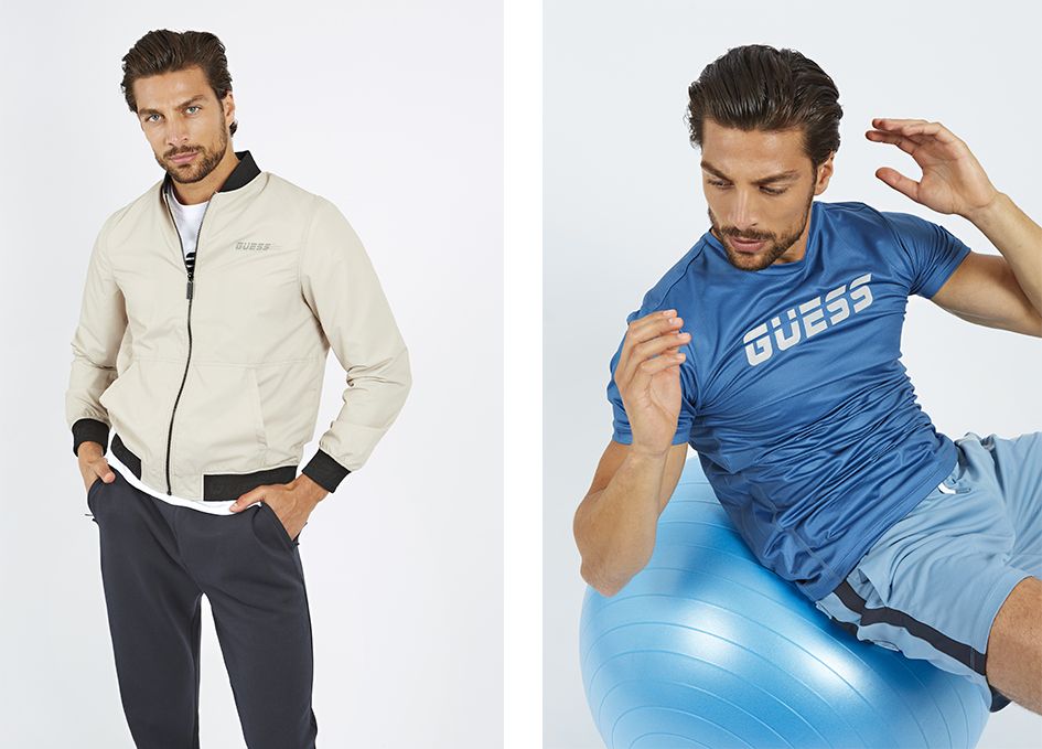 MEANWHILE, THE GUESS MAN ASSUMES MINIMAL, UNDERSTATED CONFIDENCE IN COMFORTABLE EVERYDAY PIECES THAT PLAY WITH A LIGHT, SEASONAL COLOR PALETTE WITH CONTRASTING DETAIL FOR THE ULTIMATE SPORTSWEAR STYLE.