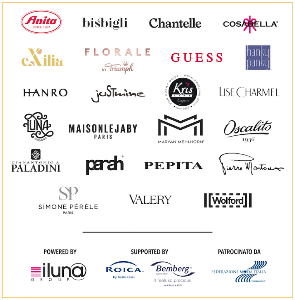 Anita, Bisbigli, Chantelle, Cosabella, Exilia, Florale by Triumph, Guess, Hanky Panky, Hanro, Justmine, Kris Line, Lise Charmel, Luna Splendida, Maison Lejaby, Maryan Mehlhorn, Oscalito, Paladini, Parah, Pepita, Pierre Mantoux, Simone Pérèle, Valery, Wolford.