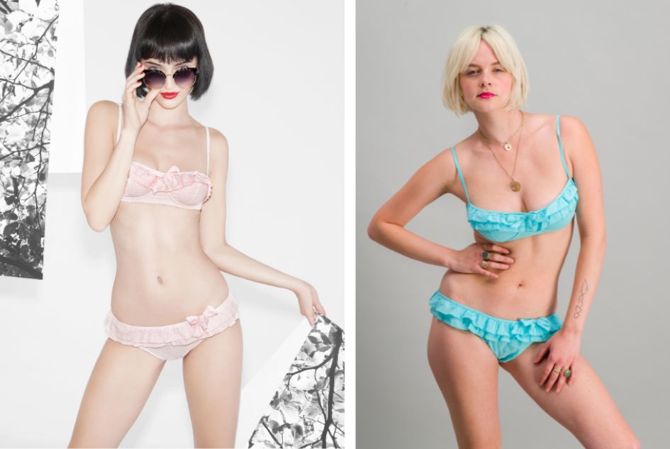 Nelle foto in alto, corsetteria in cotone del marchio francese Maud et Marjorie