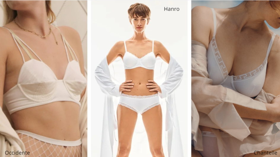 Nel segmento lusso, numerosi marchi propongono capi di "lingerie-à-porter": come Miu-Miu, il cui universo di lingerie esternabile presenta reggiseni con ferretto in costina di 100% cotone (venduti al prezzo di 530 €!). L’e-shop di lusso Net-à-Porter capitalizza questa offerta di alta gamma con marchi più o meno noti, come LovesHackyFancy, brand americano creato da Rebecca Hesel Cohen nel 2013, che propone un guardaroba estivo con vari capi in cotone, come bustier o corsetti. Nella fascia entry-level, La Redoute ha mantenuto, nel suo e-shop, i suoi modelli storici (sui 22 €), disponibili rispettivamente fino alla coppa F e alla D: dedicati alle consumatrici in cerca di un reggiseno contenitivo in cotone dal look non necessariamente basic.