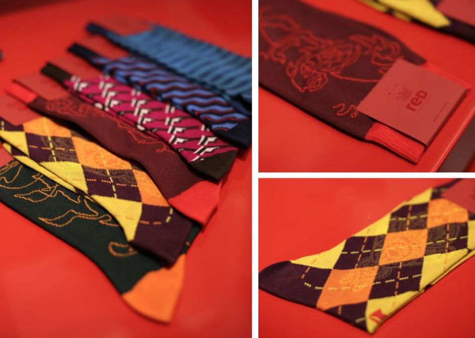 Tiziano Guardini, giovane stilista italiano, vincitore dei Green Carpet Fashion Awards 2018, ha abbracciato con entusiasmo il progetto: “Abbiamo deciso di raccontare 3 mondi maschili uniti dall’amore per il colore e lo stile. Il primo è caratterizzato da una componente fortemente grafica e lineare, e rappresenta una linea continua raffigurante una rosa e un leone, due elementi apparentemente contrapposti, ma in grado di descrivere due aspetti dell’uomo Red: la  forza e l’eleganza. Il secondo mondo richiama le scelte grafiche classiche del passato, come l’agryle e le righe, rielaborate in chiave più moderna attraverso l’aggiunta di una stampa paisley sovra-applicata al pattern lavorato a macchina. L’ultima proposta è quella che racconta più di me e il mio percorso, ed è legata agli elementi grafici della natura che sono a me molto cari. Abbiamo ripreso gli elementi dell’acqua e delle montagne reinterpretati in chiave optical anni ’70”.