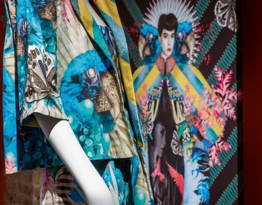 La creazione tessile contemporanea è evoluta profondamente in questi anni grazie all’utilizzo delle nuove tecnologie. E al contempo si è delocalizzata e globalizzata. A fronte di questo fenomeno, spesso sinonimo di omologazione, la Cité Internationale de la Dentelle et de la Mode ha deciso di esplorare la creatività innovativa di un giovane marchio 100% britannico: Modern Love. Accomunate dalla medesima passione per la bellezza, il colore, la stampa e il design, le due stiliste anima di Modern Love traggono la loro ispirazione dal mondo vegetale e animale, dalle culture del mondo, dal cinema e dal filone del grafismo geometrico.