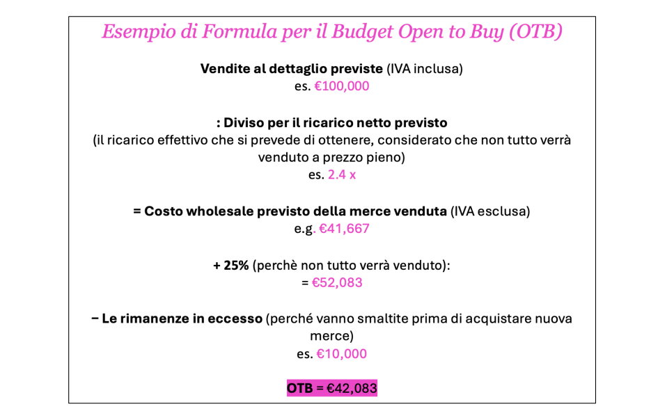il tuo budget “open to buy (OTB)”, partendo dalla tua previsione di