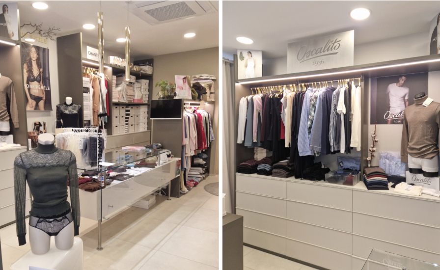 Il nuovo spazio si sviluppa in un unico ambiente con due camerini collocati in posizione riservata nella parte finale del negozio. Da uno di essi si accede a una corte interna utilizzata per presentazioni di prodotto ed eventi. Il layout prevede inoltre un doppio banco di appoggio per servire le clienti e un magazzino interno accessibile dall’area cassa. L’offerta comprende oggi lingerie donna e uomo, maglieria intima, nightwear e loungewear, moda mare e una selezione di abbigliamento e accessori per una clientela medio-alta, il rapporto con la quale rappresenta un elemento centrale per la boutique. La fidelizzazione nasce dalla cura nella selezione delle collezioni, proposte in un ambiente improntato a disponibilità e cortesia. L’efficacia della comunicazione, basata sui social ma soprattutto sul passaparola, crea la community e contribuisce all’acquisizione di nuovi clienti.