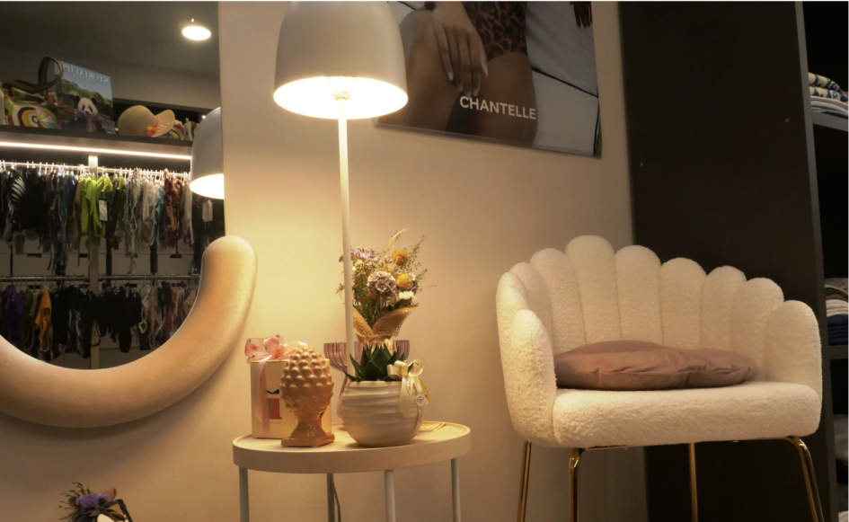 Ci piace per l’angolo prova con poltrona e specchio: un piccolo “salotto lingerie” che rende l’esperienza in negozio più accogliente