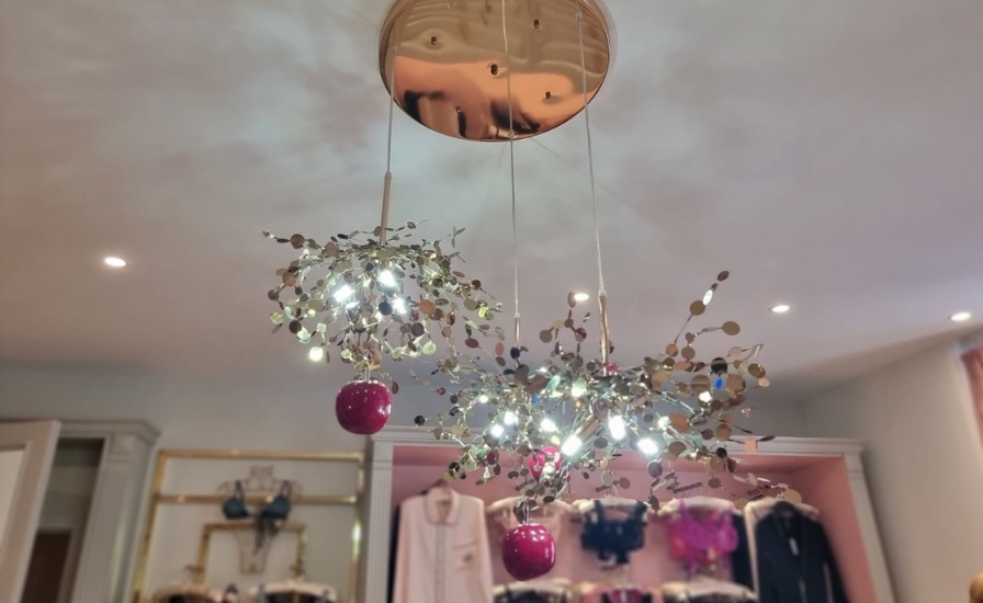 La boutique riflette essa stessa questa ricerca di unicità. Toni di rosa e tocchi dorati evocano ambientazioni da fiaba, dove lo straordinario entra in una dimensione intima. Ogni arredo, realizzato su misura, esprime la volontà di conciliare estetica e funzionalità.