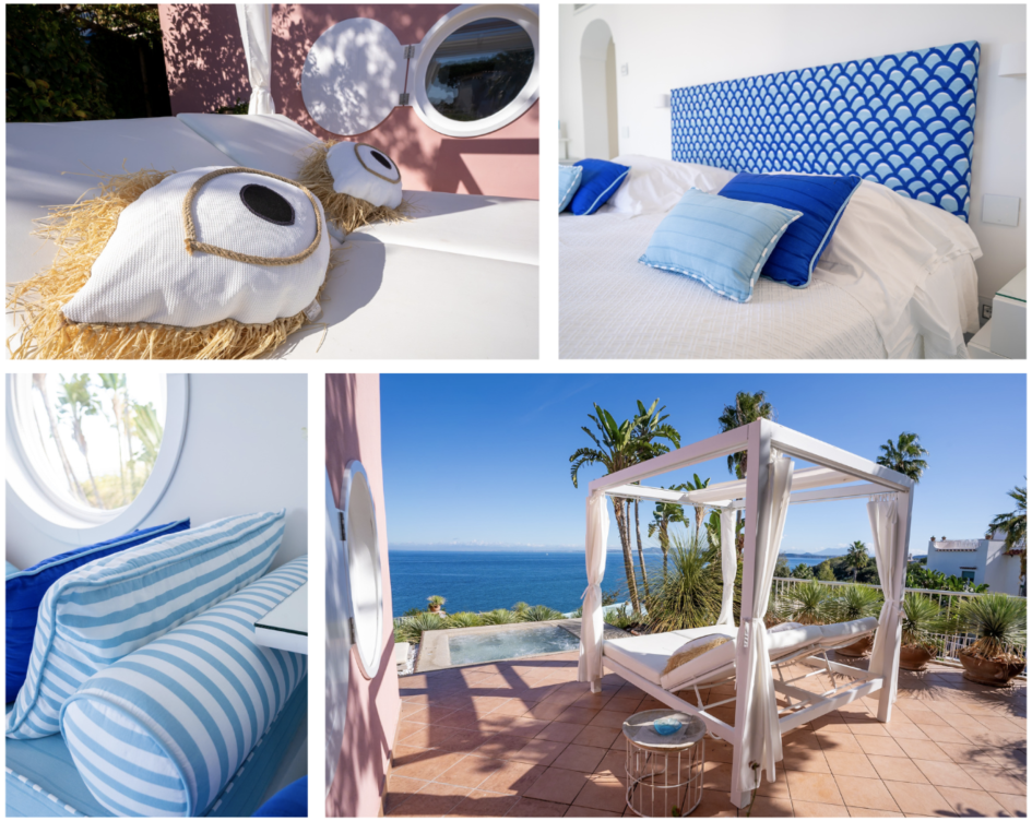 Nella quiete della baia di Cafiero, tra la Spiaggia degli Inglesi e il Castiglione, il Continental Mare è un piccolo angolo di paradiso sull’isola di Ischia, intimo e appartato. Un tempo dimora privata di un magnate americano, oggi è parte della collezione Leohotels Ischia dei fratelli Leonessa, albergatori sull’isola fin dagli anni Sessanta. Della dimora mediterranea conserva l’architettura, lo stile e i colori: incastonato nella roccia, rivolto al mare e a tramonti mozzafiato, è circondato da giardini terrazzati popolati di essenze mediterranee e tropicali. L’atmosfera è quella di una villa di famiglia più che di un albergo, di un rifugio segreto sul mare, con ogni dettaglio curato con la stessa attenzione amorevole che si riserva a una casa. È l’albergo per chi cerca privacy, silenzio, benessere e natura con due piscine termali, un piccolo centro benessere e l’accesso esclusivo al mare attraverso una discesa priva immersa nella roccia. La novità 2025 è la Suite a Mare realizzata in collaborazione con l’archivio Livio De Simone, icona del textile design italiano. In posizione appartata e privilegiata, la Suite a Mare è un volume indipendente, con patio, giardino e mini pool vista mare. Gli interni sono un inno al Mediterraneo e alla luce: le maioliche dipinte e realizzare su disegno esclusivo, i tessuti d’autore e le inconfondibili geometrie firmate Livio De Simone, un’esplosione di turchese, bianco e blu in dialogo con il cielo e il mare che irrompono da ogni finestra. Lo stile della maison Livio De Simone – nato negli anni Settanta dal genio creativo dell’artista e designer napoletano che dipingeva a mano i suoi tessuti con ampie pennellate tra motivi optical e “tutti i colori possibili” - ha cambiato volto anche ad altre camere e suite dell’hotel che da due anni ha avviato un attento lavoro di restyling. Cuscini, testiere di letti, sommier, tende e dettagli della tappezzeria sono realizzati artigianalmente con i tessuti ispirati ai disegni originali dell’archivio storico De Simone e restituiscono all’ambiente un'eleganza solare, artistica e senza tempo.