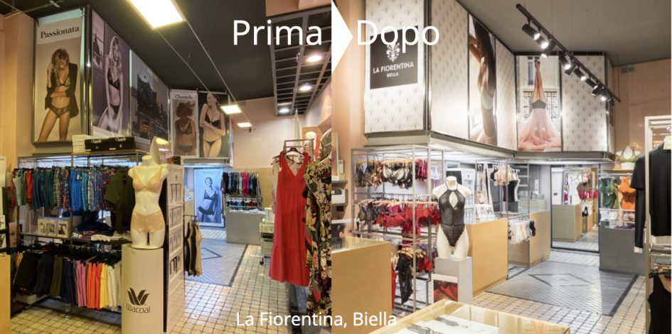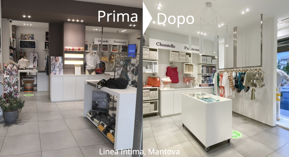 Che dire di quel mobile ingombrante in mezzo al negozio, che si ha tanta voglia di far sparire? La buona notizia è che gli si può dare una seconda chance, operando un restyling funzionale. Cosa significa? Che del mobile si può far tagliare una parte, o lo si può adattare a una nuova posizione all’interno del negozio. “Per il restyling del negozio Linea Intima a Mantova abbiamo adottato proprio questa soluzione” racconta Adriana “In questo caso un mobile che era in centro al negozio, costruito attorno a una colonna strutturale, è stato trasformato per adattarlo a una delle pareti perimetrali. In questo modo, il mobile che risultava ormai ingombrante in mezzo allo spazio di vendita è stato sfruttato in modo più integrato e funzionale al negozio stesso”