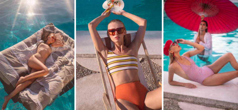 La nuova collezione P/E 2020 si nutre delle luminosità e dei colori delle rarefatte atmosfere estive. Negli interi e nei bikini in tinta unita, riverberi di luce a pelo d’acqua esaltano il finish cangiante della lycra e dei tessuti velvet stretch. Scanzonati e retrò, i rigati, ton sur ton, multicolor e marinari, rievocano la sensualità decadente dei primi anni ‘70. Le linee insolite e audaci, lontane dai soliti cliché, sono tagliate sul corpo al solo scopo di valorizzarne la bellezza: profonde scollature creano moderni contrasti con i crop top leggermente accollati e gli olimpionici con scollo all’americana. Gli interi bon ton sono resi ancora più delicati dalle spalline sottili e dalle cuciture invisibili, mentre i “bottom” dei due pezzi variano dai modelli micro a quelli ad “ali di gabbiano” fino alle culotte a vita alta, per un look più sofisticato.