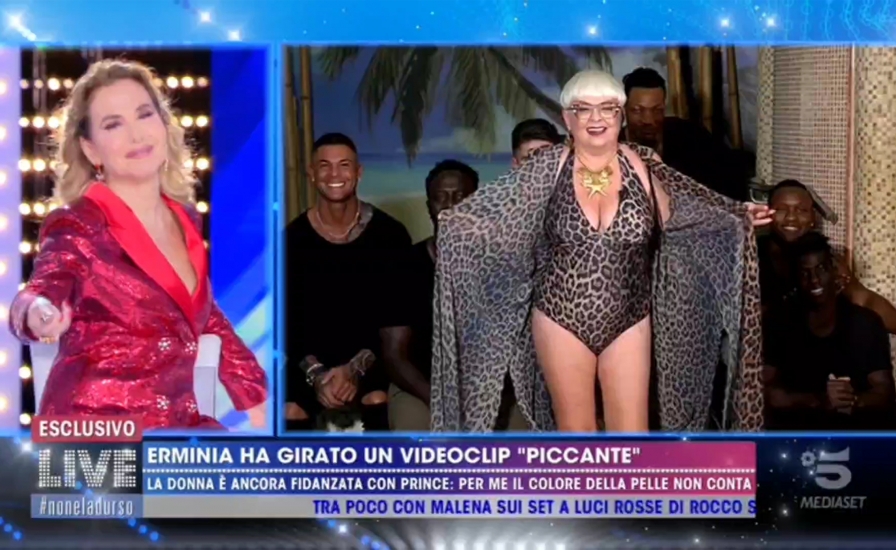 Martedì 17 dicembre durante Pomeriggio 5 la gonna lunga con le frange ORO abbinata al costume intero con la stampa Tiger ha riscosso molto successo.