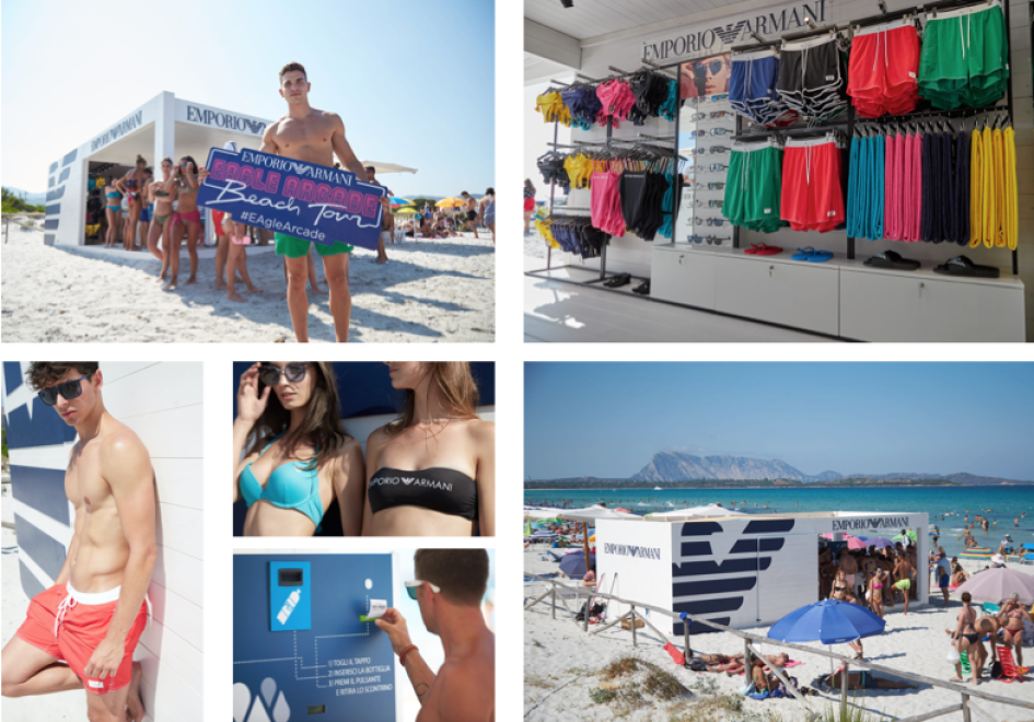 Al via il 19 luglio in Sardegna, presso la Spiaggia La Cinta di San Teodoro, dal 26 luglio l’Eagle Arcade Beach Tour di Emporio Armani prosegue sul litorale pugliese, dove fino al 4 agosto farà tappa all’Été Beach di Gallipoli. L’iniziativa si pone l'obiettivo di tutelare il mare e salvaguardare l’ambiente sensibilizzando al rispetto e alla pulizia delle spiagge favorendo il riciclo e la raccolta differenziata.