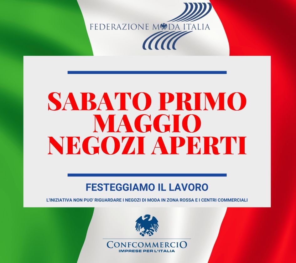 Federazione Moda Italia-Confcommercio promuove la campagna per l’apertura al 1° maggio dei negozi di moda, tessile, abbigliamento, calzature, accessori, pelletterie e articoli sportivi, in zona gialla e arancione e fuori dai centri commerciali, con l’obiettivo di sostenere il lavoro, dopo tanti giorni di chiusura.