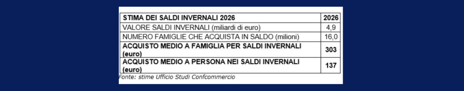 Per il Presidente nazionale di Federazione Moda Italia-Confcommercio, Giulio Felloni: "C’è grande attesa per i saldi invernali, appuntamento importante per il rilancio dei consumi di moda e per il sostegno al potere d’acquisto delle famiglie italiane. I saldi generano, infatti, benefici diffusi: consentono ai consumatori di acquistare prodotti di qualità e durevoli a prezzi convenienti e, allo stesso tempo, contribuiscono a rivitalizzare e a vivacizzare i centri urbani. Si tratta inoltre di un momento molto sentito anche sotto il profilo turistico, perché favorisce l’aumento dei flussi di visitatori, italiani e stranieri, alla ricerca di un’esperienza d’acquisto autentica. Un’esperienza che garantisce a tutti i consumatori convenienza reale, trasparenza e fiducia, anche grazie ad una data di avvio certa in tutta Italia e a una durata definita. Nei saldi, grazie al servizio e alla consulenza dei commercianti, gli acquisti sono più consapevoli e sostenibili, orientati alla qualità e lontani dalla logica dell’usa e getta".