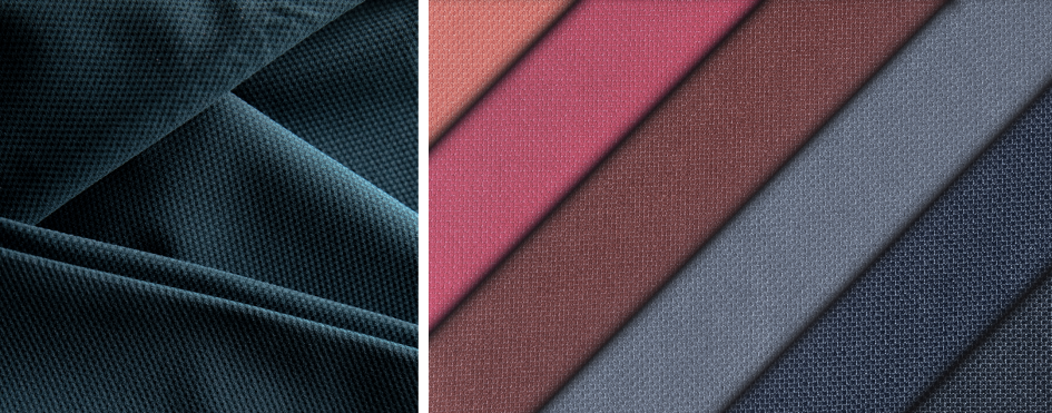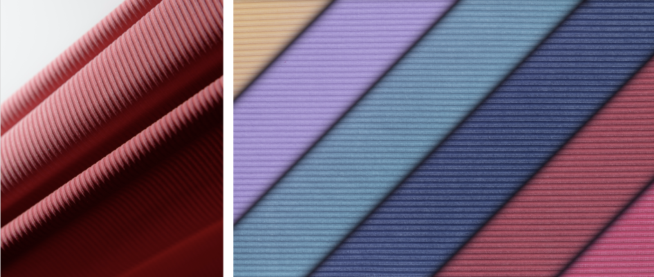 Nelle nuove collezioni activewear, intimo e mare focus sulla rib (foto in alto), frutto di una peculiare legatura che crea uno spessore in superficie, così da ottenere la caratteristica riga stretch della "costina" a rilievo, e sulla resa 3D del piqué stretch (foto più sotto), una lavorazione tessile a tre pettini che produce un intreccio tridimensionale senza perdere l’elasticità originale del tessuto in ogni direzione.