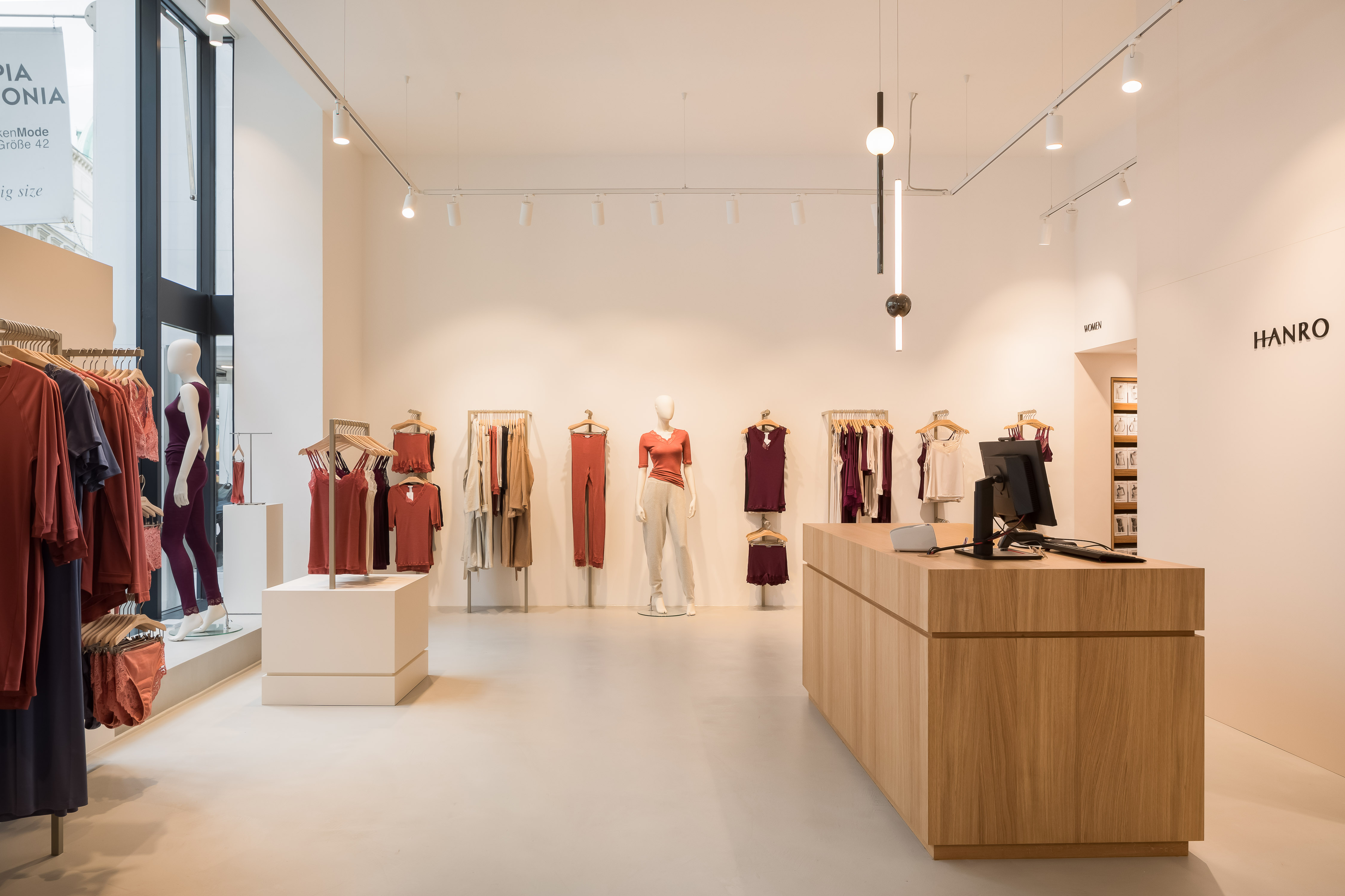 Fedele al motto "less is more", il nuovo concept declinato nei due negozi rispecchia il dna Hanro: un design interamente a vista, senza tempo, che combina legno e toni crema, caldi e luminosi.