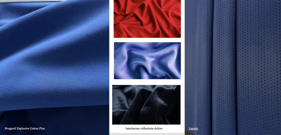 In questo contesto Inter Jersey Milano ha presentato Active, una collezione di tessuti elasticizzati progettati per lo sportswear ad alte prestazioni che integra Roica SP — fibra elastica resistente al cloro. In questa proposta ogni costruzione è ingegnerizzata per rispondere a specifici requisiti funzionali ed è arricchita dai trattamenti Revecol MS, che ottimizzano la gestione dell'umidità attraverso processi a ridotto impatto ambientale.