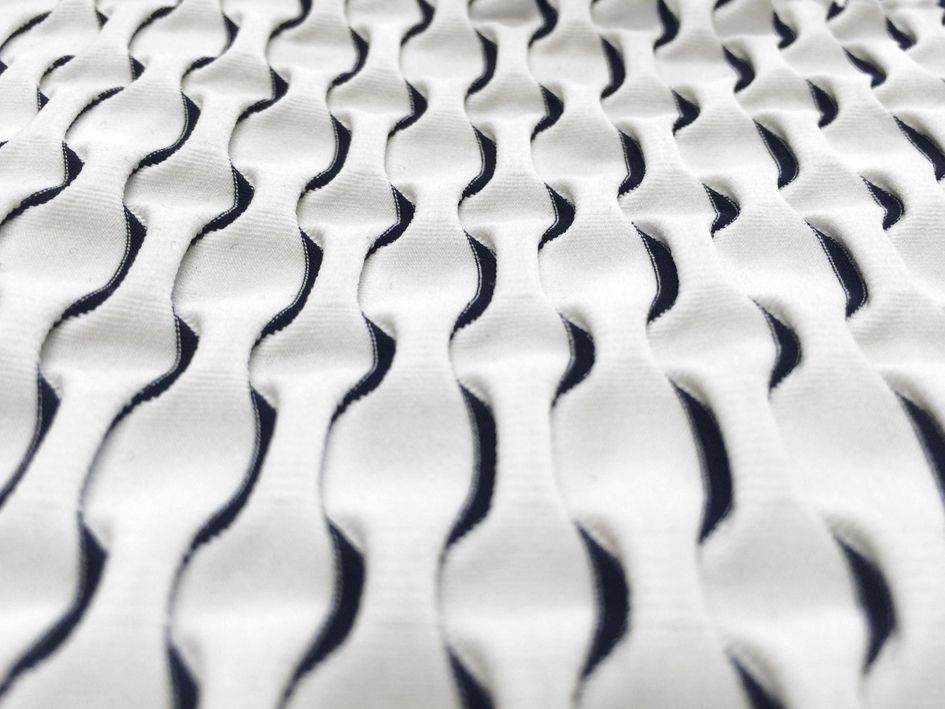 Per il bagno, il produttore francese presenta una nuova linea di tessuti moda che s’inscrive nell’attuale tendenza sportswear in chiave di look, stile e fantasie: micro jacquard geometrici allover, righe lavorate con filati chinè o più brillanti…Per moderne silhouette dall’allure sport chic. Novità anche nella collezione intimo A/I 2017-18, con una maglia leggera in cotone/poliestere destinata alla lingerie notte: righe lavorate in materiali differenti e motivo di foglie devoré si fondono visivamente, creando effetti di trasparenza solo su una parte del disegno.