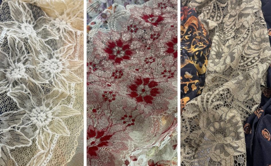 Tra le novità sviluppate sui nuovi telai textronic, l’azienda ha puntato su un filo di ciniglia combinato con PA riciclata Renycle per creare disegni a rilievo su pizzi leggeri effetto nuvola, presentati anche in variante lurex. Gli sviluppi sui filati con aspetto metallico, già al centro della R&D Iluna, si concentrano oggi sul mondo dei lurex colorati, capitalizzando l’expertise tecnica collaudata nel tempo sui fili pre tinti e multicolor per realizzare pizzi textronic in nuove altezze, con colori a rilievo per aspetti ricamo dall’impatto 3D, ed effetti metallici dall’allure materica. Nuovi orizzonti anche in chiave eco-fashion: apripista in ambito pizzo, Iluna propone infatti su base jacquardtronic certificata GRS stampe realizzate con tecnologia Green-KD. Quest'ultima consente di stampare su qualunque fibra tessile – comprese le mischie poly/cotone o nylon/viscosa non gestibili con stampa tradizionale – a zero emissioni e con un bassissimo consumo idrico, grazie a un processo a circuito interno chiuso per il riciclo dell’acqua.