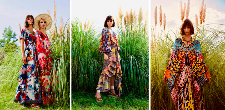 Nella collezione S/S 2021 questo concept distintivo si sviluppa su tre temi forti, scanditi da da una tavolozza di rossi, gialli, blu e sepia per dare profondità al design e più definizione ai dettagli: Flowers Garden, inno alla natura ribelle in una profusione di fiori colorati; Stella Maris, evasioni esotiche per tuffo nelle profondità marine; Fly Away, un battito d'ali di farfalla per dare nuova atmosfera all'animalier.