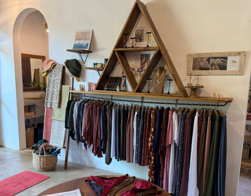 Adiacente ai camerini, un piccolo salotto invita a prendersi il tempo di una pausa: sfogliando un libro, sorseggiando un caffè e contemplando il giardino, mentre le scimmie si aggirano placide sul tetto. Più di una semplice boutique, Le Ketiya è un rifugio, un luogo di incontro e condivisione dove ogni visitatore vive un’esperienza unica, una storia, una connessione profonda con questo angolo di paradiso. A cinque anni dalla sua apertura, la boutique continua a riflettere la visione di Gabrielle: un equilibrio perfetto tra estetica, etica e qualità della vita.