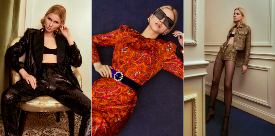 Classico e moderno si rincorrono nel gioco del mix-and-match: il velluto si unisce al vinile e i tagli classici si sposano all’estro sartoriale. Fil-rouge, il tocco raffinatamente malizioso che ritroviamo nei flare pants, nelle giacche over, nei corsetti morbidi, negli abiti asimmetrici, nelle tute-da-lavoro in Golden Jeans e nei pantaloni con le pinces. Bottoni e fibbie-gioiello, spalline e scollature profonde, revers, maniche importanti e fiocchi diventano dettagli di seduzione. Damaschi e paisley, arricchiti da lurex e bagliori metallic o dalle stampe in coordinato dei total look, si fanno espressione nel Pàp della cifra stilistica delle designer. E, ancora, jacquard e raso, paillette ricamate o bicolor, oro washed, prezioso bouclé o jeans tramato con fili oro, in un palette di colori eye-catching: Rockstar Orange, Berry Bordeaux, Honey & Gold, Cassis, Electric Blue e l’immancabile Pure Black.