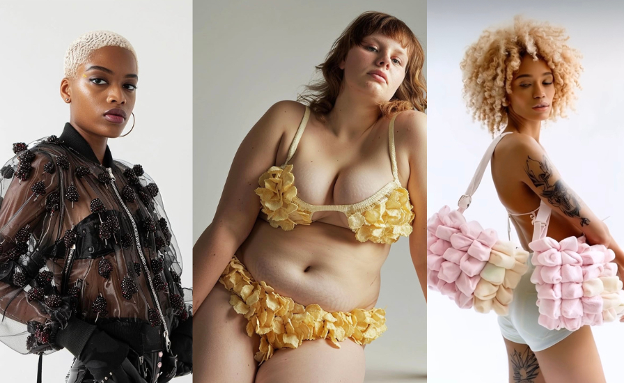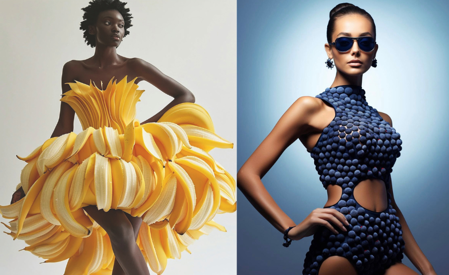 Moda dalle forme organicheIl progetto “Food fashion” è una serie eye-catching che propone capi di grande impatto visivo, in un equilibrio stupefacente tra l’ordinario e l’assolutamente straordinario. Il segreto sta nelle combinazioni scelte: un sontuoso abito da sera fatto di banane sbucciate, costumi da bagno tutti di mirtilli, lingerie di uova di zucchero, una giacca di lamponi e panna… L’approccio di Bonny alla moda rompe ogni barriera, trasformando la natura attraverso la tecnologia. Lo dice lui stesso: “La natura è una fonte inesauribile di possibilità progettuali. L’AI mi aiuta ad astrarre queste forme in modo ludico e a tradurle in silhouette del tutto inedite.” Tradurre questi design digitali in oggetti fisici rappresenterebbe una sfida, ma una sfida che potrebbe dar vita a esempi unici di haute couture e a vere opere d’arte.