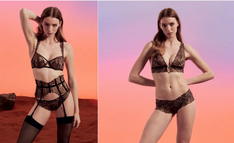 Battezzata “Sensory Illusion”, la collezione ci proietta in un magico mondo botanico in cui i movimenti del corpo riflettono quelli della natura e in cui il turbinio delle foglie ricamate diventa ornamento mistico, a decorare il corpo femminile. La linea si declina in due colori complementari: "Golden Leaves", un contrasto ipnotico tra feuillage bronzeo e linee nere grafiche, e "Silk Rose", un mix seducente di toni iridescenti dal rosa pallido al rosa antico. La capsule Iris Van Herpen x Aubade si compone in totale di dieci pezzi: brassière a triangolo senza ferretto, reggiseno a triangolo con ferretto, reggiseno imbottito con scollatura profonda e reggiseno corbeille, abbinati a perizoma, slip o shorty St. Tropez tutti in pizzo. Un body, un babydoll e un seducente reggicalze a vita alta completano la linea. La collezione Iris Van Herpen x Aubade sarà disponibile in una selezione di negozi partner multimarca, nelle boutique Aubade e sullo shop online del marchio a giugno 2022.