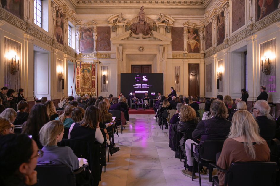 Presente a sorpresa in conferenza stampa Achille Lauro, artista di Warner Music che, negli ultimi anni, ha saputo unire i mondi della moda e della musica facendo del loro virtuoso connubio un elemento distintivo e propulsore della cultura italiana, e che in questa sede ha espresso la sua personale visione sui temi dell'arte, dell'espressione individuale, dell'inclusività, dell'accessibilità e della condivisione che sono alla base della fruizione contemporanea, nonché al cuore del progetto Purple.