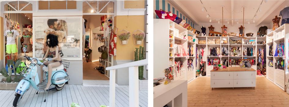 Un mix effervescente di vintage e moderno! In linea con lo stile locale, le vecchie cabine da spiaggia in legno ispirano gli arredi, con corde e materiali recuperati dal mare a dettare il ritmo espositivo di costumi e accessori. L’unicità della boutique sta poi nel farsi ritrovo imperdibile per i clienti affezionati, negli anni diventati amici, che qui si danno appuntamento oltre l’acquisto.