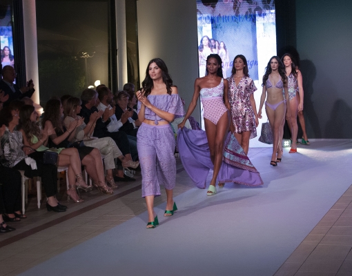 La sfilata PE23 ha portato in passerella il mondo di colore, stampe e accurate lavorazioni delle nuove collezioni del Gruppo. Con un finale a tutto fashion, dedicato alla grande novità della stagione: Marina, la capsule essence di Marina Abagnale, che ha chiuso la sfilata con una promessa di oro, dress vedo-non-vedo e sgambature vertiginose.