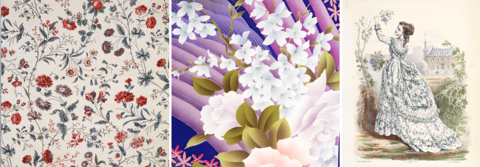 Dal XVIII secolo la stampa floreale, motivo associato alla primavera, particolarmente apprezzato nell’abbigliamento femminile e negli accessori moda, ha conosciuto numerose declinazioni. Anno dopo anno, i fiori, naturalistici o stilizzati, continuano a ispirare i disegnatori industriali e gli stilisti.