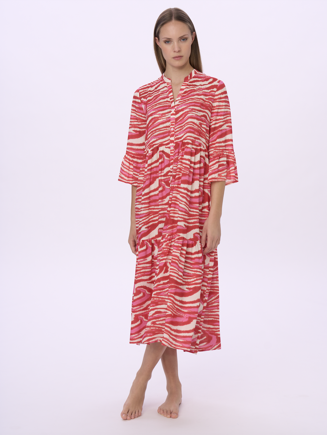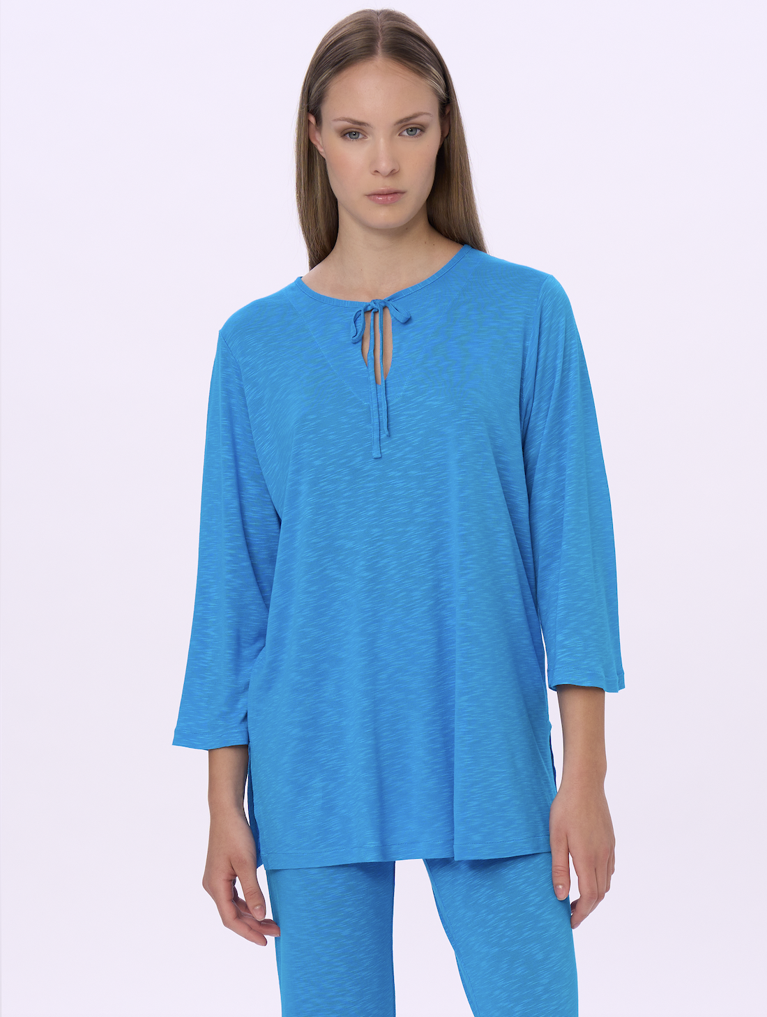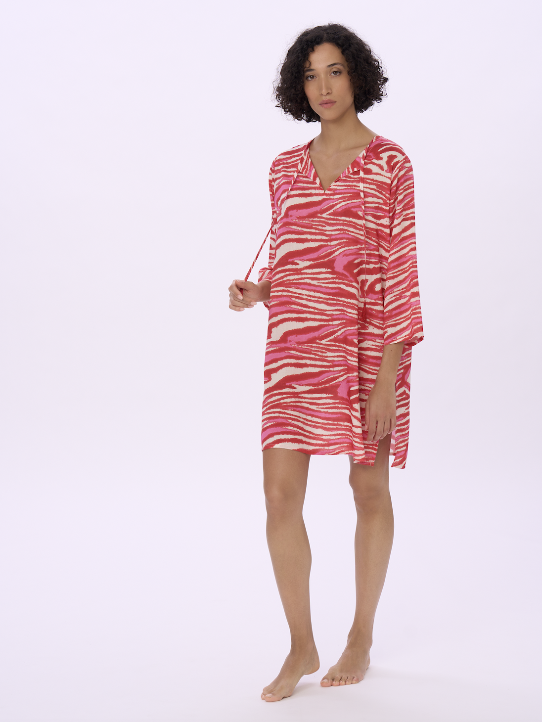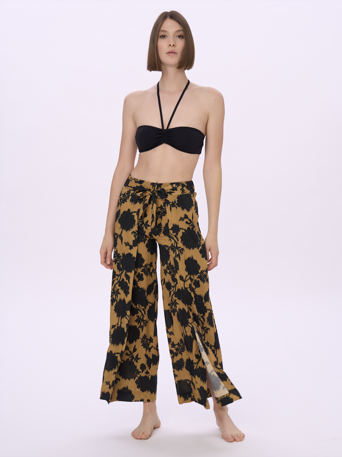 Sviluppati su varie basi tessuto (jersey o tela, in fresca e naturale viscosa) e in varie forme e lunghezze, gli abiti mare sono protagonisti della collezione, che si completa con una proposta di maglie e pantaloni, uniti e stampati, in tessuti fluidi per un utilizzo crossover ai vari momenti della vacanza (e non solo…). Nella loro essenzialità minimale, i costumi sposano anch’essi un concetto contemporaneo che mette il comfort all’indosso e il potere del colore al servizio del benessere del corpo: niente ganci, solo semplici allacciature, e costruzioni pulite per modellistiche che si adattano anche a vestibilità curvy, senza rinunciare a forme moderne e accattivanti sul lato B, con tagli brasiliani per slip o culotte.