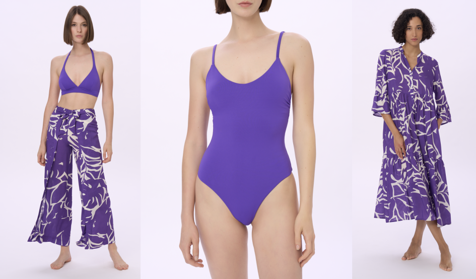 5 temi di stampa, ciascuno coordinato a 2 colori moda, per una proposta beachwear che ripensa il concetto di mare donna con un progetto collezione versatile e trasversale: utilizzato come fashion link tra le tinte unite dei costumi e dei capi easywear coordinati e le stampe dei fuoriacqua e dell’abbigliamento mar, il tema cromatico giocato su tonalità intense e di impatto interpreta la voglia di vestirsi a colori, sbizzarrendosi con accostamenti decisi, anche inusuali in una chiave di mix & match che veste l’estate dalla spiaggia alla città.