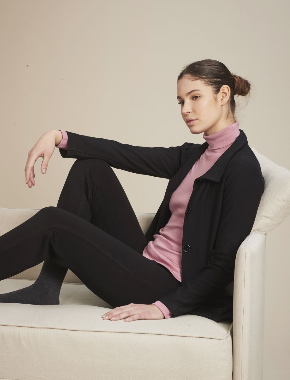 Leggero, caldo, soffice, naturale. Il prezioso cachemire arricchito da morbido micromodal: una carezza sulla pelle senza rinunciare alla praticità e al comfort. Tanti modelli per ogni esigenza: top smanicato, t-shirt o manica lunga... Collo alto, girocollo o scollo a barchetta... In una delicata palette di avorio, cipria e sesamo, completati dai classici nero e blu persia. La gamma è realizzata in 100% jersey e si completa in chiave esternabile con un modello long sleeve in jersey con collo alto e polsini lavorati a costina.