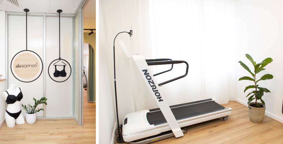 Situata a Hawthorn East, in Australia, la boutique di Tish gode di una posizione ideale: vicina a una vivace via dello shopping, ma abbastanza appartata da garantire la tranquillità che le sue clienti ricercano. Fin dall’ingresso, l’atmosfera è chiara: un “fitness studio” dove ogni cliente viene accolta con una preselezione di modelli e taglie adatti alle sue esigenze, alla sua morfologia e al suo stile di vita, mentre i restanti prodotti sono ordinatamente organizzati a stock sul retro del negozio. Il vero punto di forza? La possibilità di testare i reggiseni in condizioni reali, su un tapis roulant, per valutarne sostegno, comfort e stabilità durante il movimento. Quanto all’ambiente, «Volevamo uno spazio femminile, ma che non fosse troppo girly, ove le nostre clienti si potessero sentire subito serene e a loro agio». Missione compiuta, perché la location trasmette una sensazione di calma, complici le pareti verde pallido e le tende che si fondono armoniosamente con gli elementi scuri e moderni dell'arredo e i busti esposti su scaffalature in legno.