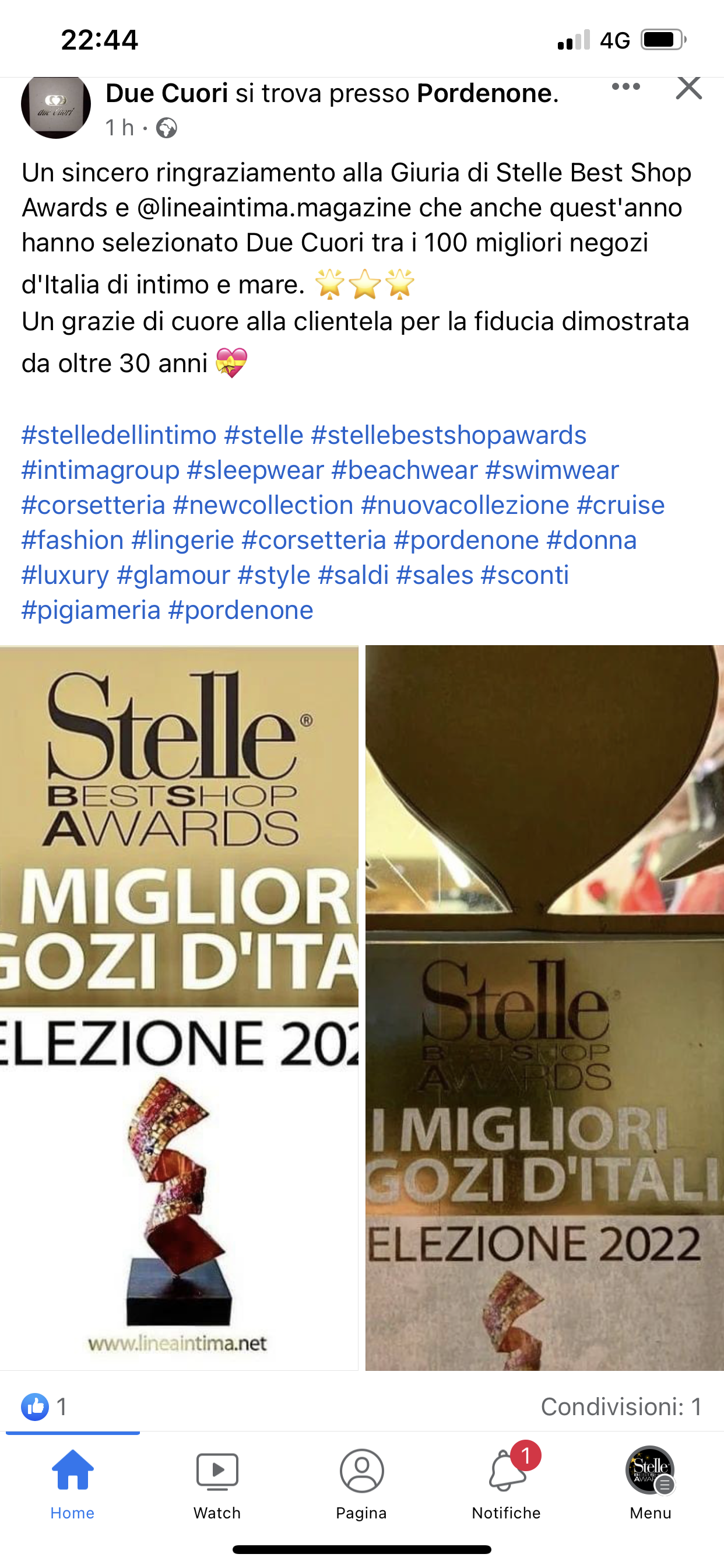 Il concorso Stelle Best Shop Awards promuove e stimola l'eccellenza dei top negozi del settore Lingerie, Beachwear e trasversali al Prêt-à-Porter, fornendo loro lungo tutto l'arco dell'anno idee e strumenti per ridondare a valle il valore e l'importanza di essere tra i "migliori in Italia". Nell'ultimo mese i negozi presenti nella selezione o nelle nomination 2022 hanno ricevuto i materiali di comunicazione digitali per condividere con le consumatrici finali e con la stampa locale il raggiungimento di questo importante traguardo. In arrivo in questi giorni anche le vetrofanie. Risultato? Sui social, un'ondata di messaggi, post e condivisioni che hanno creato il "buzz", puntando i riflettori sulla crème della lingerie community italiana. Ve ne proponiamo una selezione...