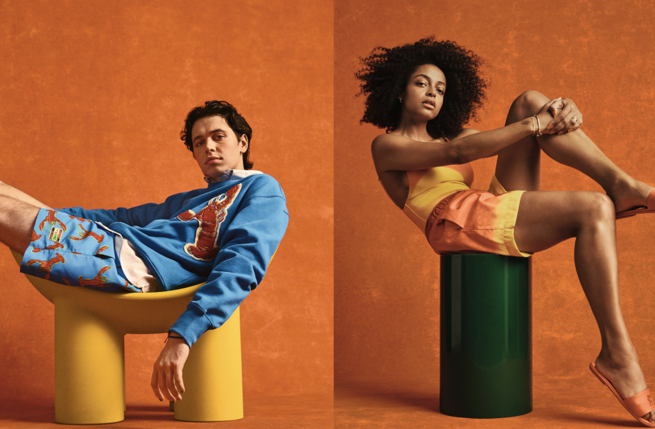 I modelli per l'uomo includono un maglione e un costume da bagno con una stampa aragosta classicamente pop, una rivisitazione contemporanea della camicia Oxford in popeline e una polo. Per la donna, il costume da bagno, la gonna midi e la camicia sono caratterizzati da una stampa a tramonto, mentre gli short in spugna con una bandiera grafica sono pensati per la comodità in una perfetta giornata estiva.