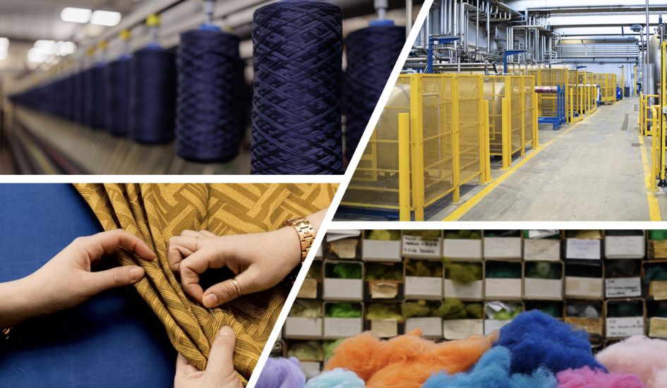Dall'alto, in senso orario: foto di Filatura Pettinata Luisa, Tintoria e Stamperia di Lambrugo, Quality Biella, Tintoria Mancini