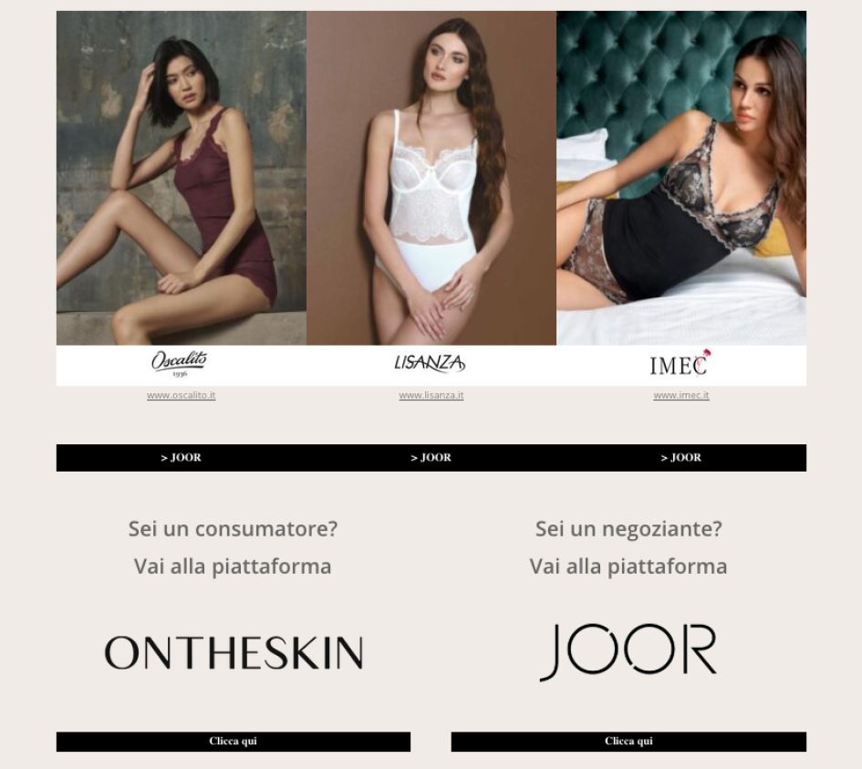 Per il BtoB ILE ha potenziando il proprio sito web già esistente - www.italianlingeriexport.it - con una showroom virtuale (JOOR) dedicata ai clienti retail che potranno visionare le nuove collezioni per tutto il periodo della campagna vendite.