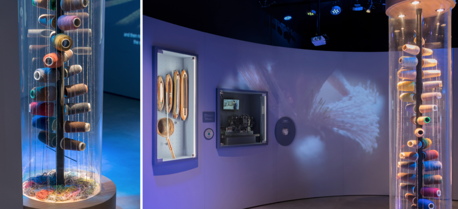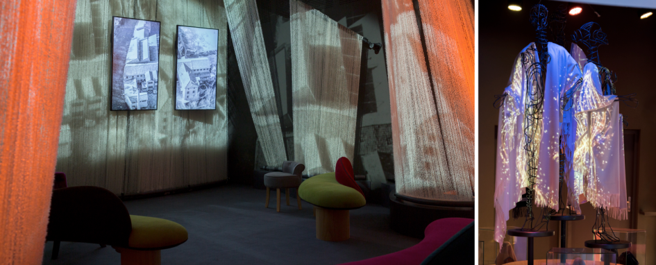 Il “labirinto della trasformazione” presenta le quindici tappe necessarie per trasformare la balla di lana in stoffa. In ciascuna di queste tappe, la materia si arricchisce di una dimensione, trasformandosi in linea, in superficie, in volume, per diventare alla fine spazio di dolce mediazione tra se stessi e il mondo. Il visitatore avrà la possibilità di azionare dei veri dispositivi di fabbricazione e vedere la materia trasformarsi sotto i suoi occhi.